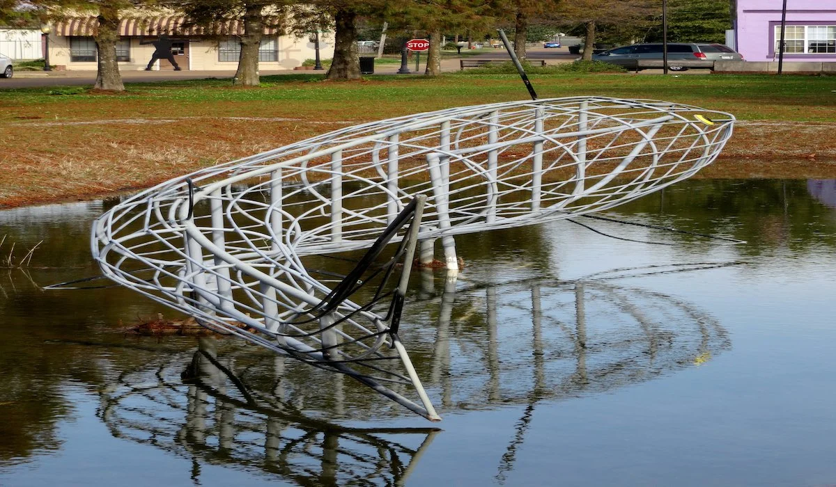 These first catfish farmers, as foresighted as they were, could never have imagined the future economic impact of those first few ponds in Humphreys County.”12 Its county seat, Belzoni, a small town with a remarkable cultural heritage, has gained fame as a Catfish Capital. It holds the catfish festival each year. Located in its downtown is the Catfish Museum and Welcome Center (Figure 8), where you will find “the complete story of the catfish from fingerling to frying pan.”13 Outside the museum is King Cat in the pond, an image that matches the name of the catfish capital. It is a forty-foot long catfish sculpture by Wes Bobo of Rolling Fork, Mississippi, an artist “who turns collected junk and found objects into art and mechanical inventions."14